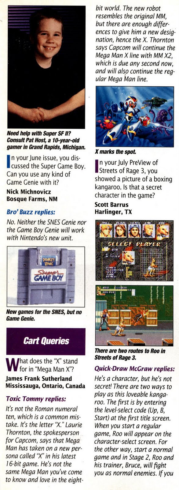 Capcom's Laurie Thornton (the same source of the early X plot details above) sent out a different message in Gamepro #64.